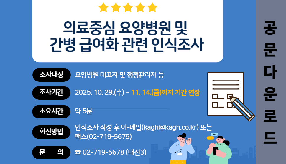 「의료중심 요양병원 및 간병 급여화 관련 인식조사」 기간 연장 안내