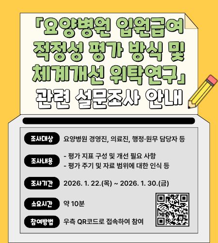 (연세대 보건대학원)「요양병원 입원급여 적정성 평가 방식 및 체계개선 위탁연구」 관련 설문조사 안내